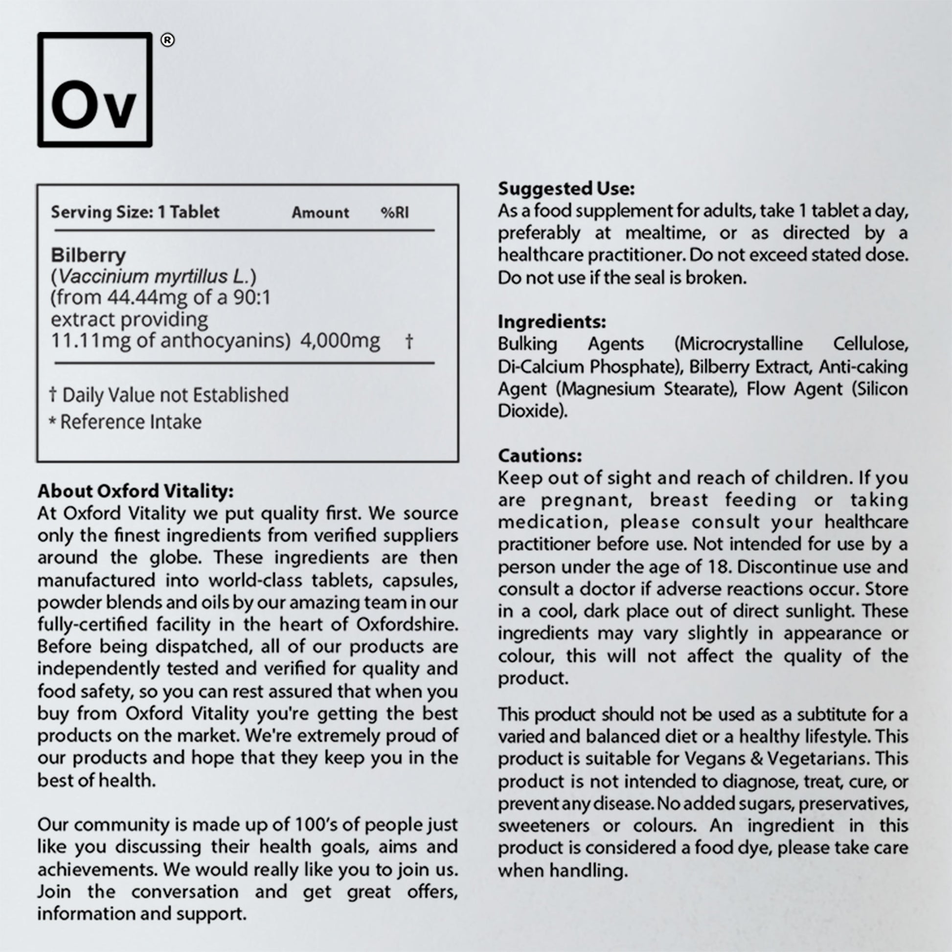 We’ve sourced an incredibly high quality Bilberry extract which contains 25% anthocyanins. Anthocyanins are responsible for Bilberry's vibrant colour and are a type of plant compound called flavonoids. Bilberry tablets are made from Bilberry extract in two strength options: 2,000mg and 4,000mg. The tablets are provided in 6mm diameter for manageable consumption.