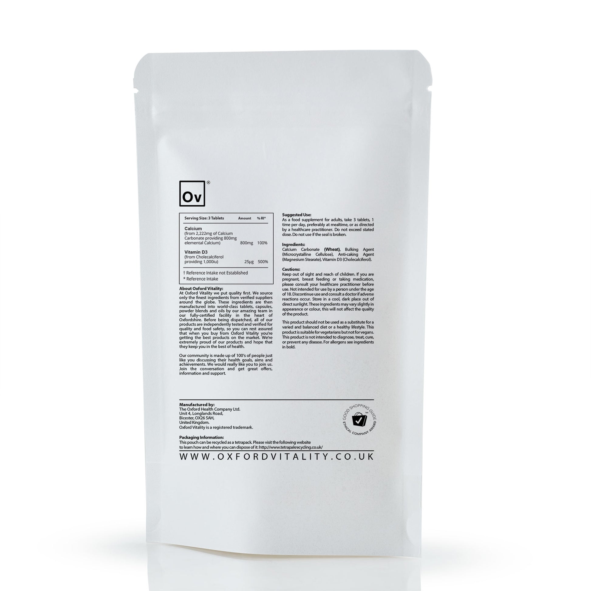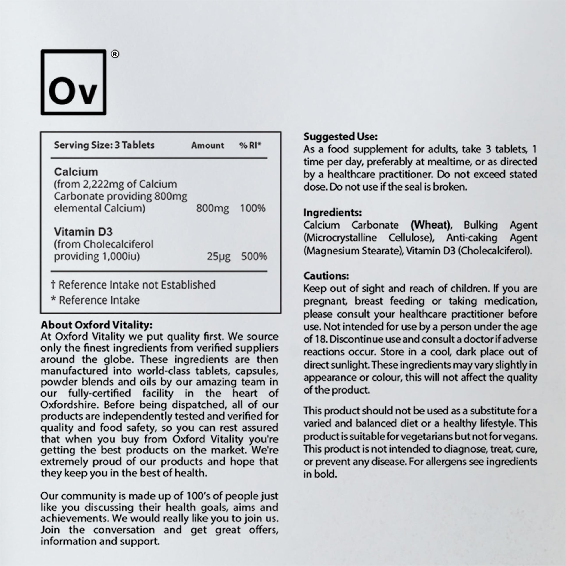At Oxford Vitality, our Calcium and Vitamin D tablets contain Vitamin D3, a type of Vitamin D that has recently been shown to be the most beneficial of the different forms of Vitamin D.