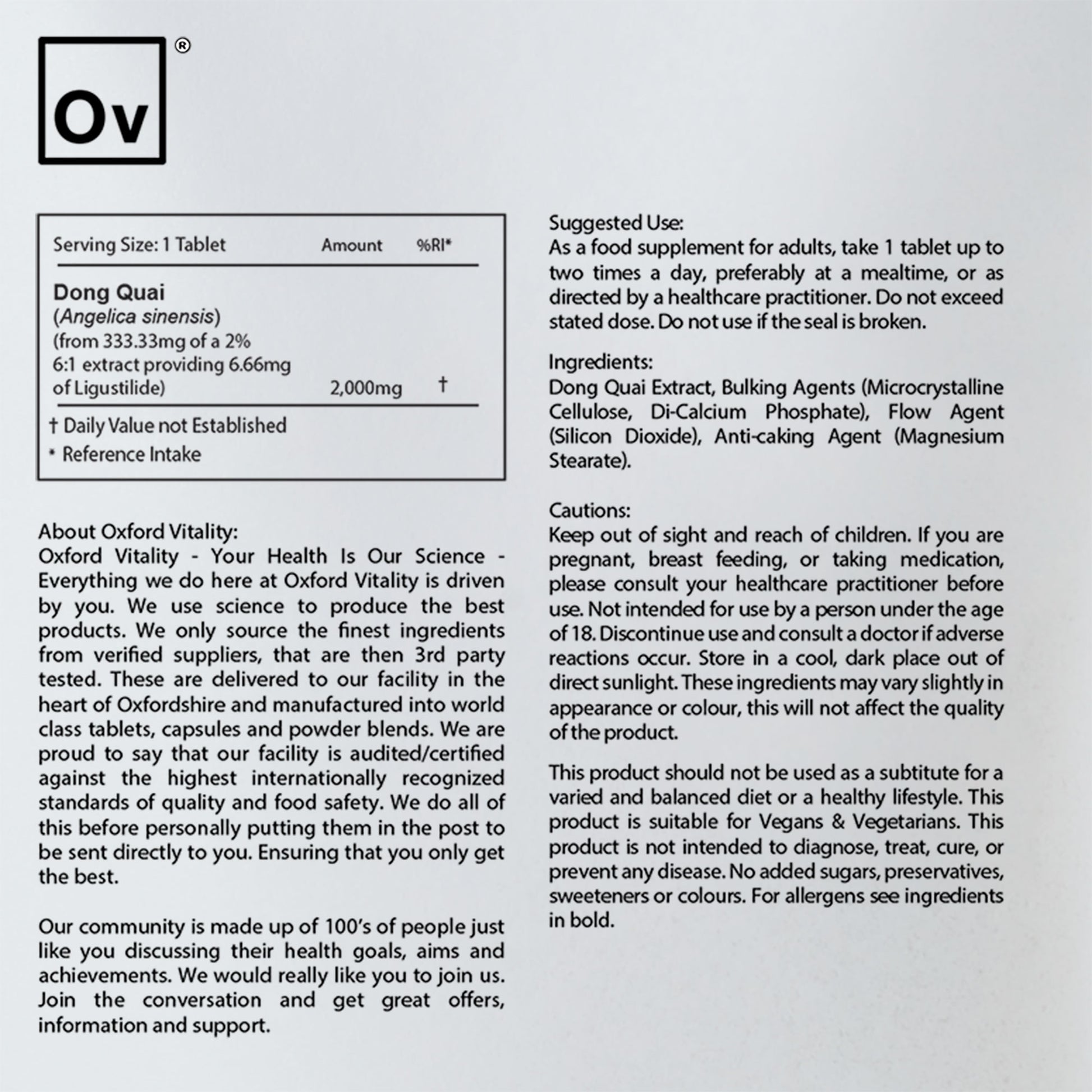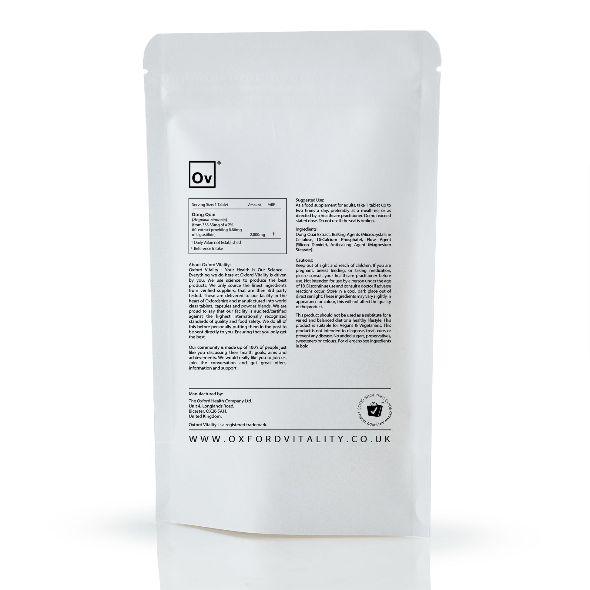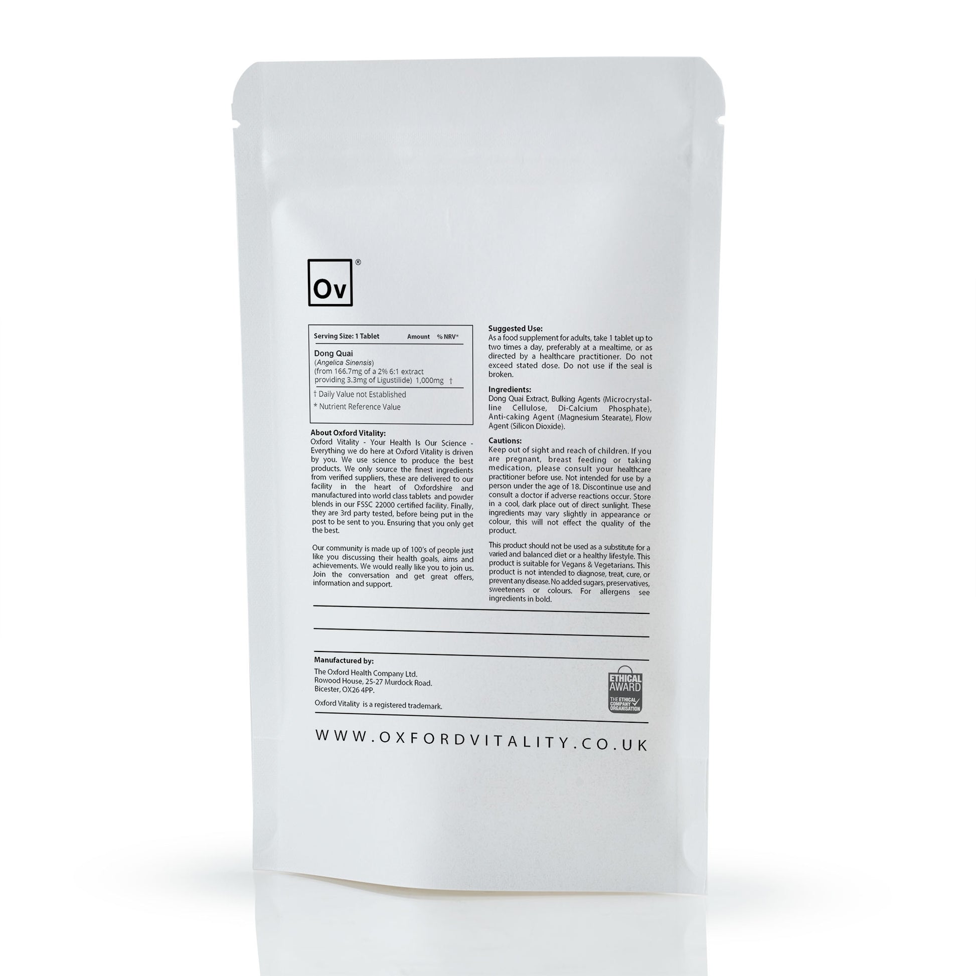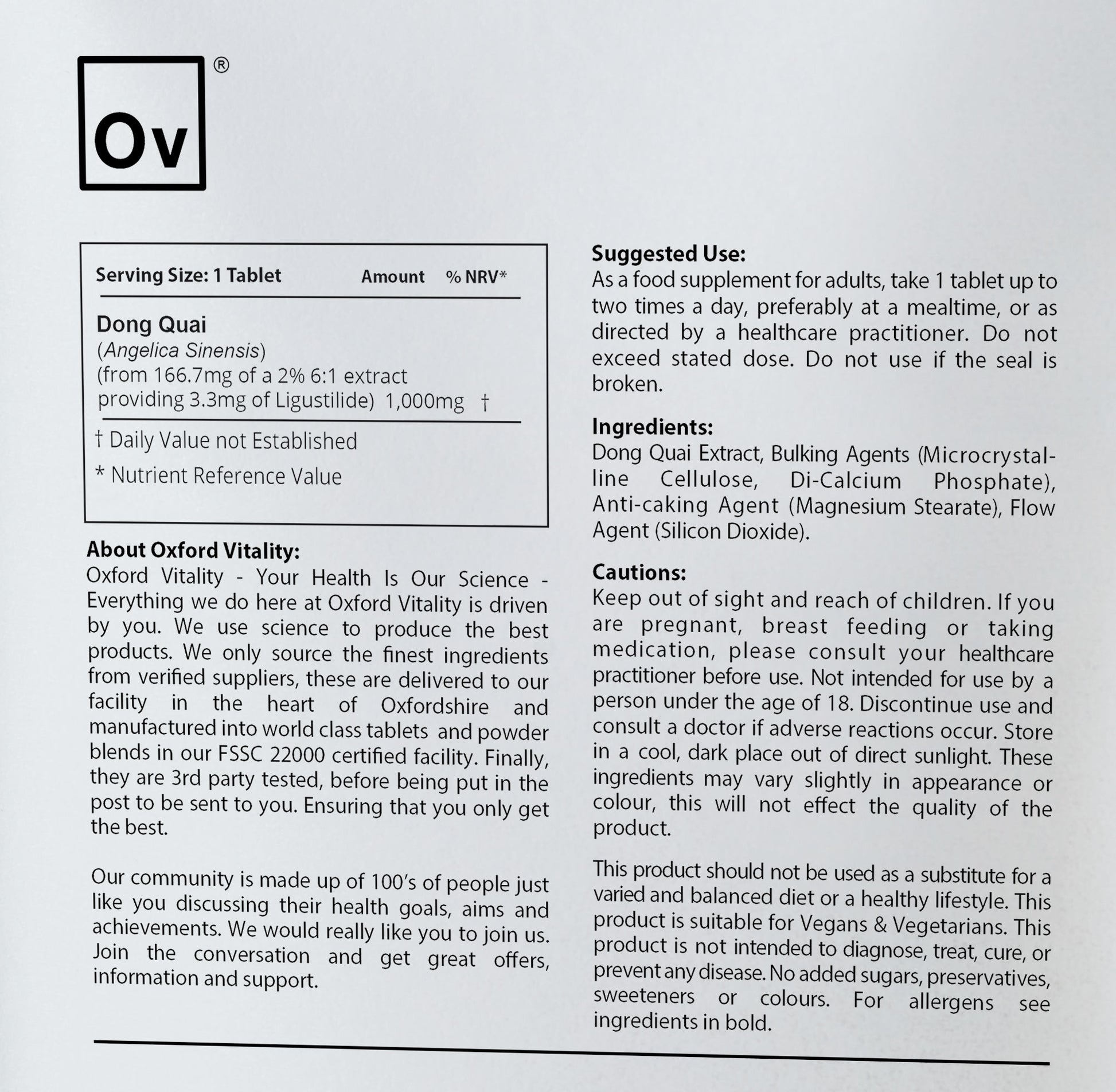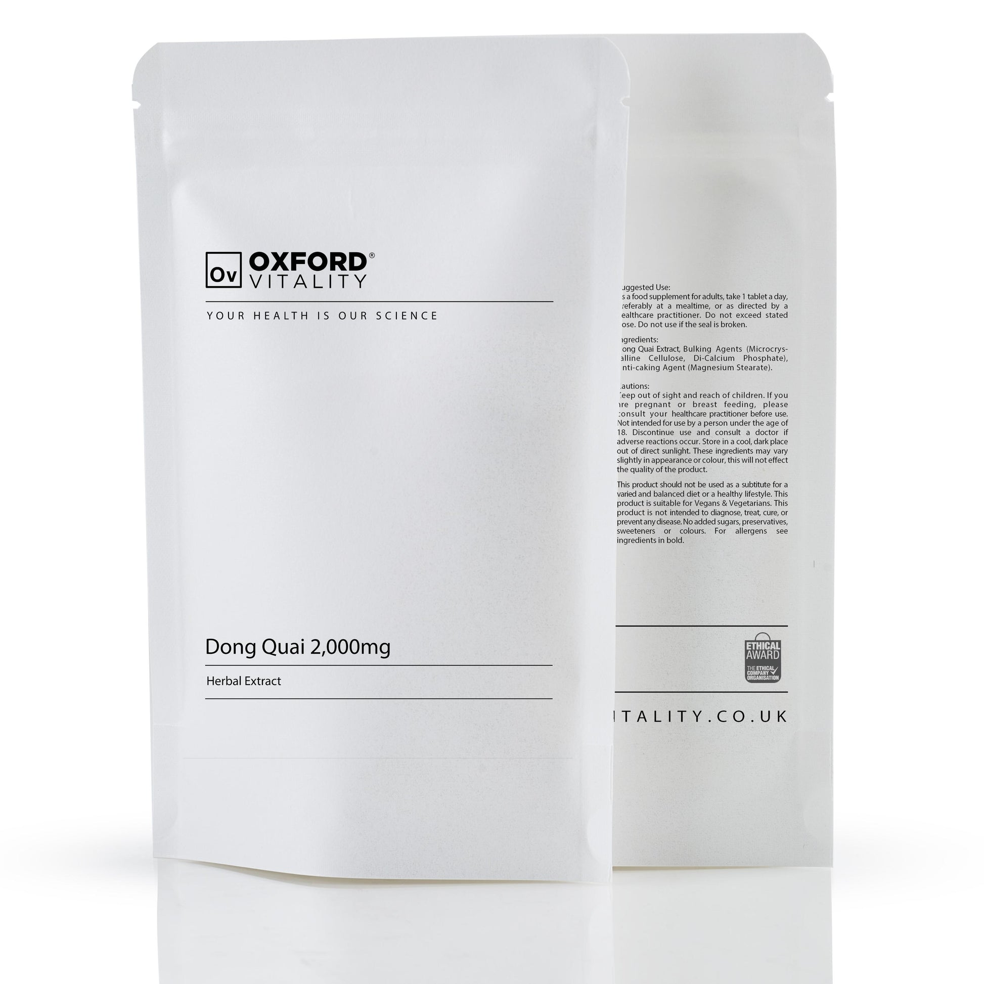 Oxford Vitality offers Dong Quai tablets in two strengths of 1,000mg and 2,000mg.