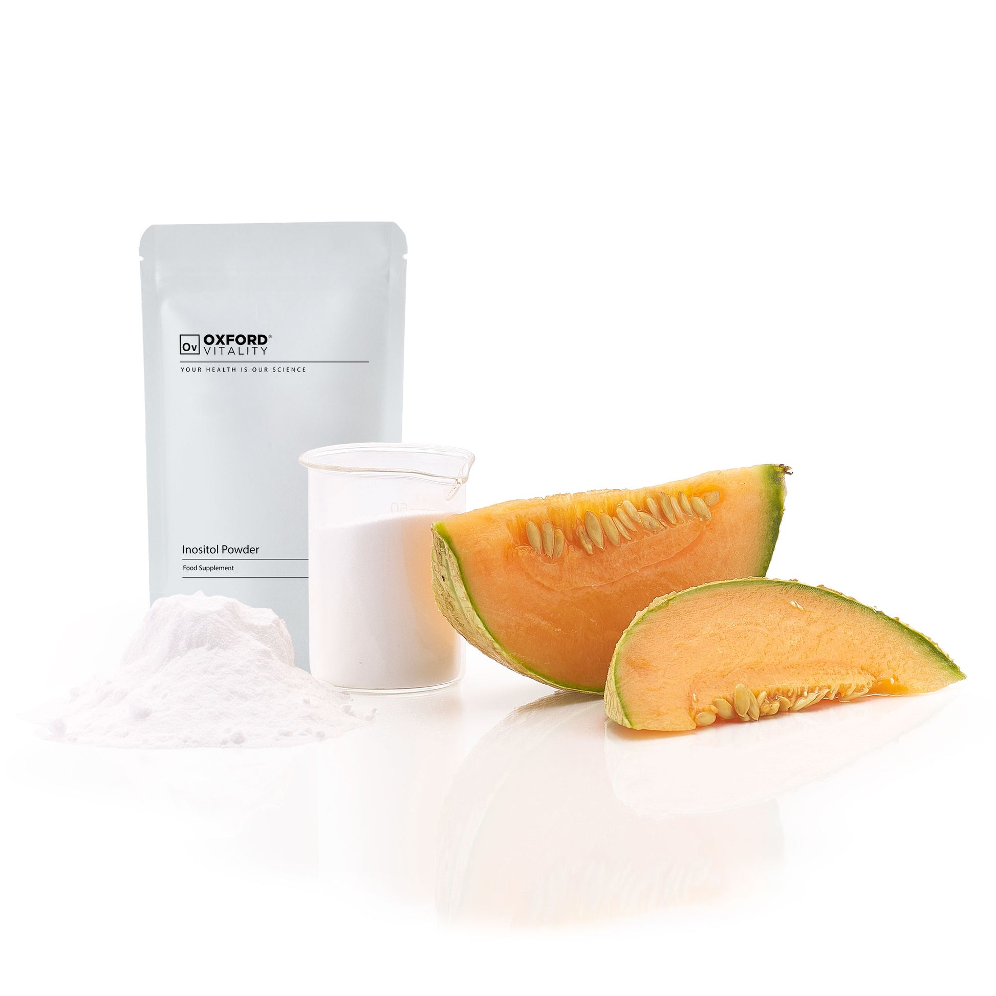 The active substance in Inositol is called Myo-Inositol which occurs in three forms. Inositol naturally occurs in foods such as fruits, beans, grains and nuts. Foods richest in Inositol include cantaloupe melon and oranges, although the compound is found in smaller quantities in lecithin oil, brown rice, soy flour and green leafy vegetables. Inositol can also be produced by our bodies from the carbohydrates that we consume.