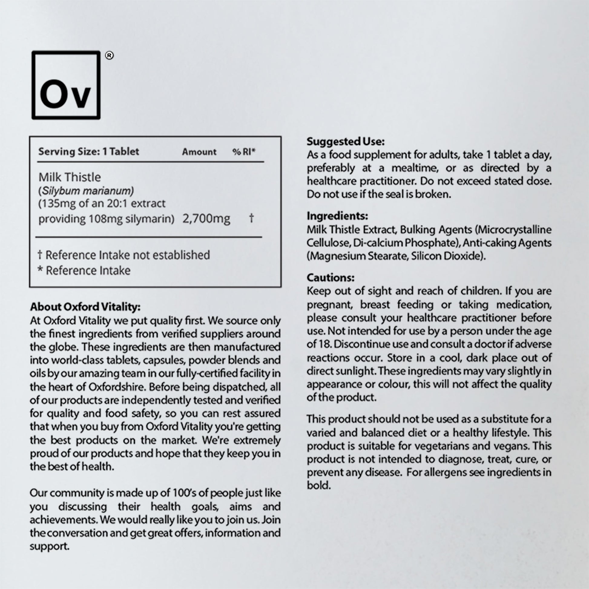 Each Milk Thistle tablet contains 108mg of silymarin. We offer different packet sizes, making it easy to meet your nutritional needs. We manufacture and package our own tablets here in Oxfordshire at our certified facility.