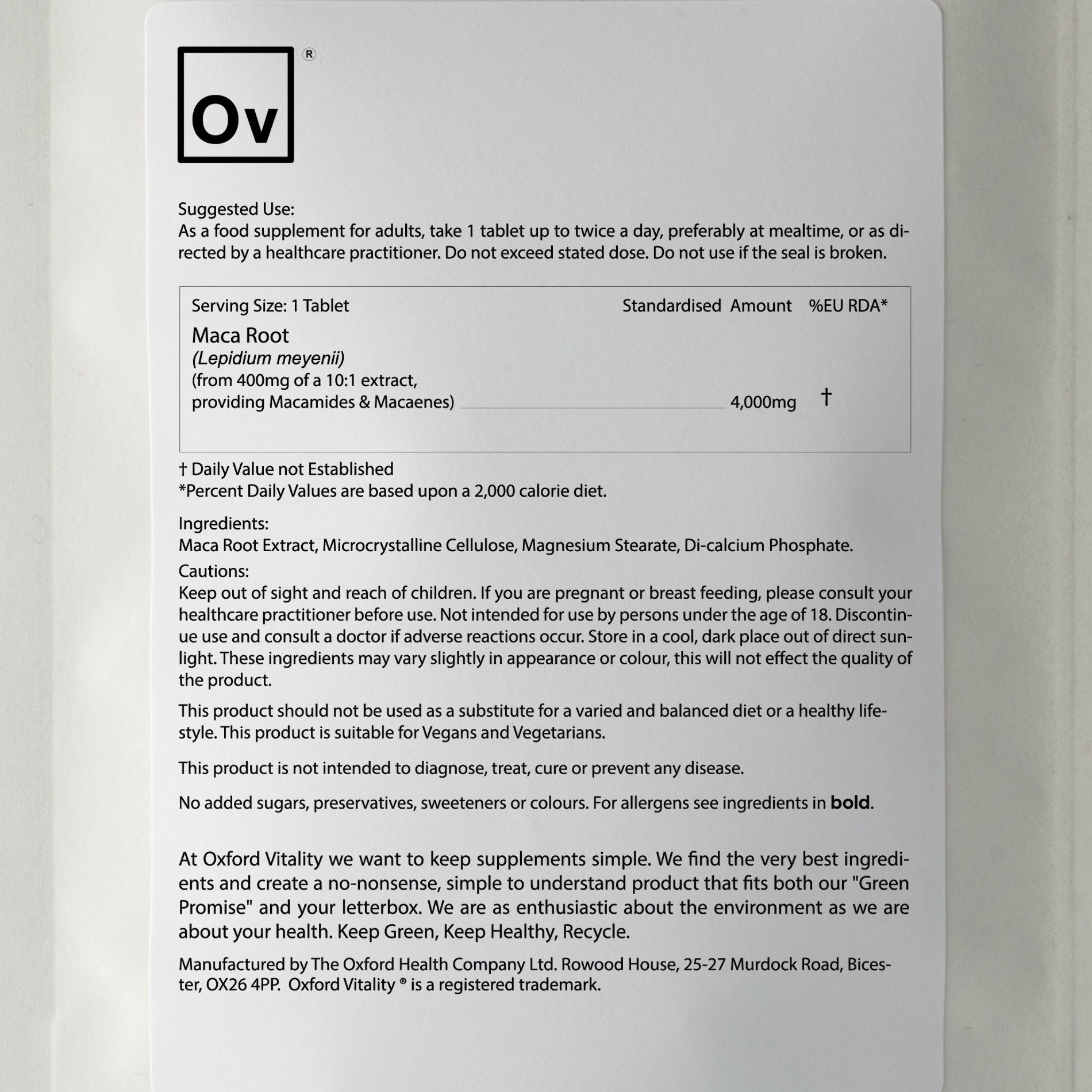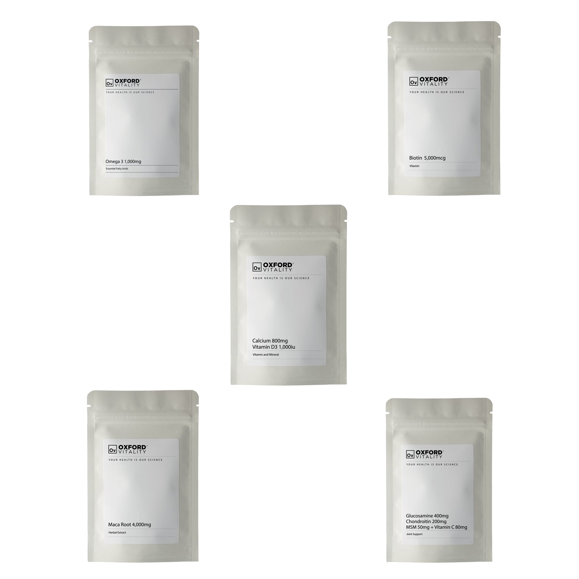 Our OV Men's Vitality Pack consists of five different tablets, aimed towards the nutritional requirements of men. The pack has been designed by a nutritionist and is suitable for those aged 18 to 99+ years. The pack includes 4 months' supply of Maca, Biotin, Omega 3, Calcium and Vitamin D3, and our Joint Support complex.