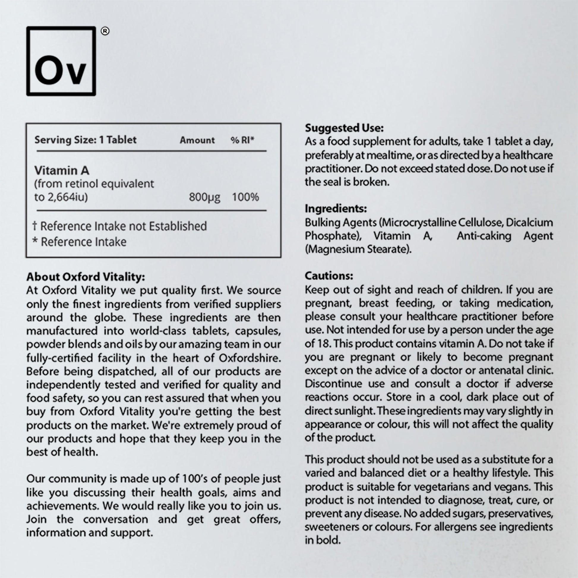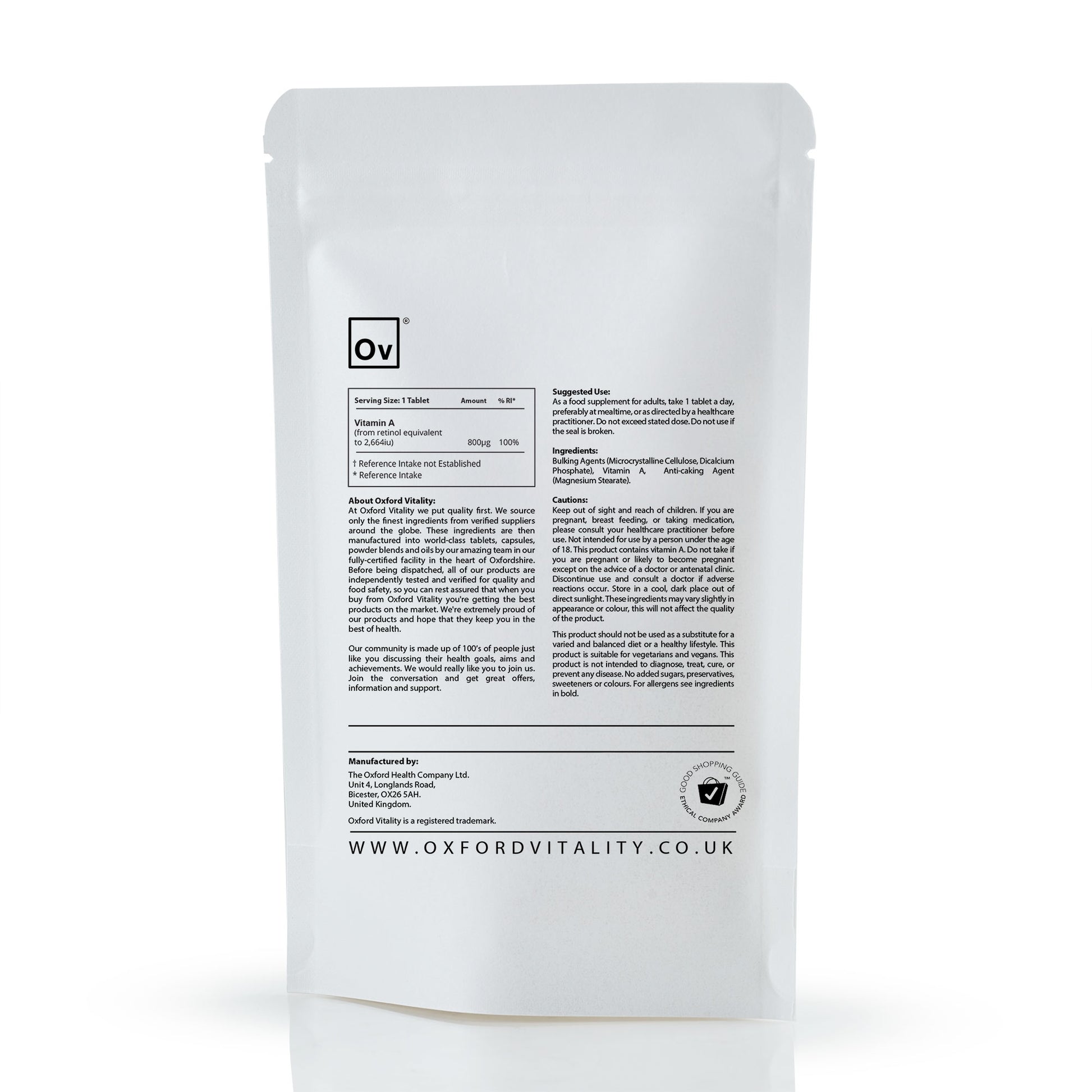 Although our Vitamin A complex contains retinol, a form of Vitamin A that is normally of animal origin, our Vitamin A complex tablets are suitable for vegetarians and vegans. The tablets are a suitable size of 6mm, providing 800mcg of vitamin A per tablet. We advise one tablet per day, as advised by Public Health England.